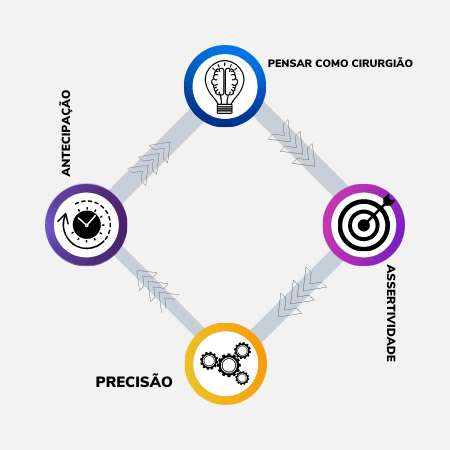 O método consiste em entender todo processo cirúrgico além de pinças e arrumação de mesa. É ter uma visão ampliada da cirurgia pensando no todo e não somente na sua mesa, para que você possa se antecipar, ser precisso e assertivo no momento da cirurgia, trazendo assim agilidade ao ato operatório. Dessa forma você deixará de ser um passador de pinça se tornando um profissional reconhecido, valorizado, respeitado e indispensável para sua equipe.